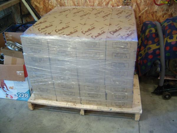 this pallet is located at an auto dealership with access to a forklift and loading area.