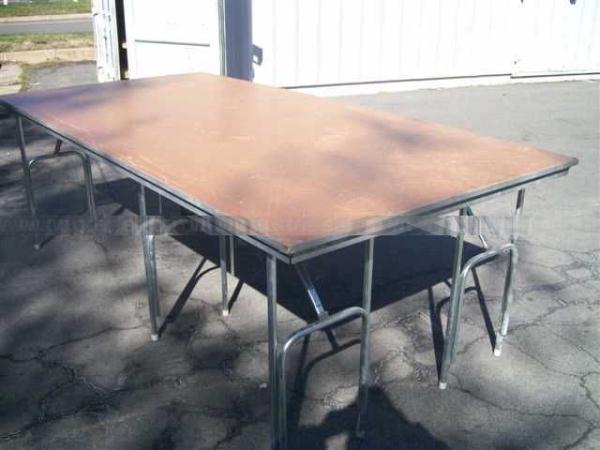 Each piece of staging measures 4 feet wide X 8 feet long. When the legs are folded, they will stack easily.