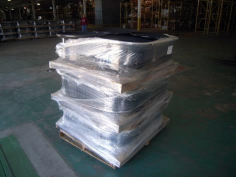 pallets with cartons of clothing shrink wrapped