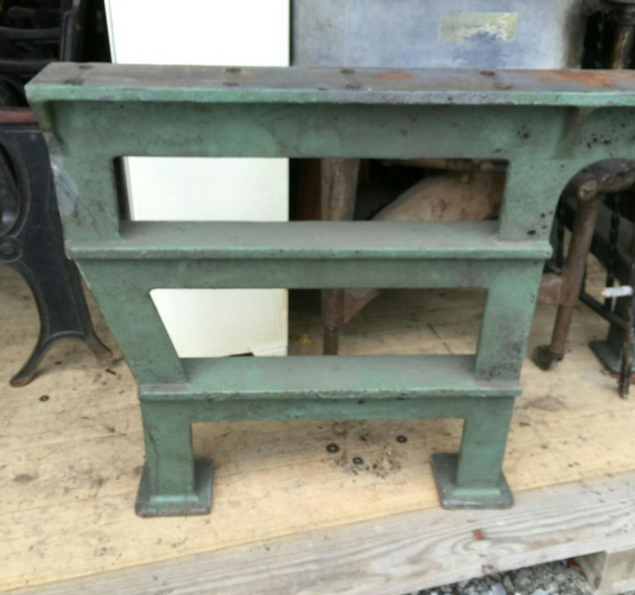 Two steel industrial table legs, about 150 lbs ea.