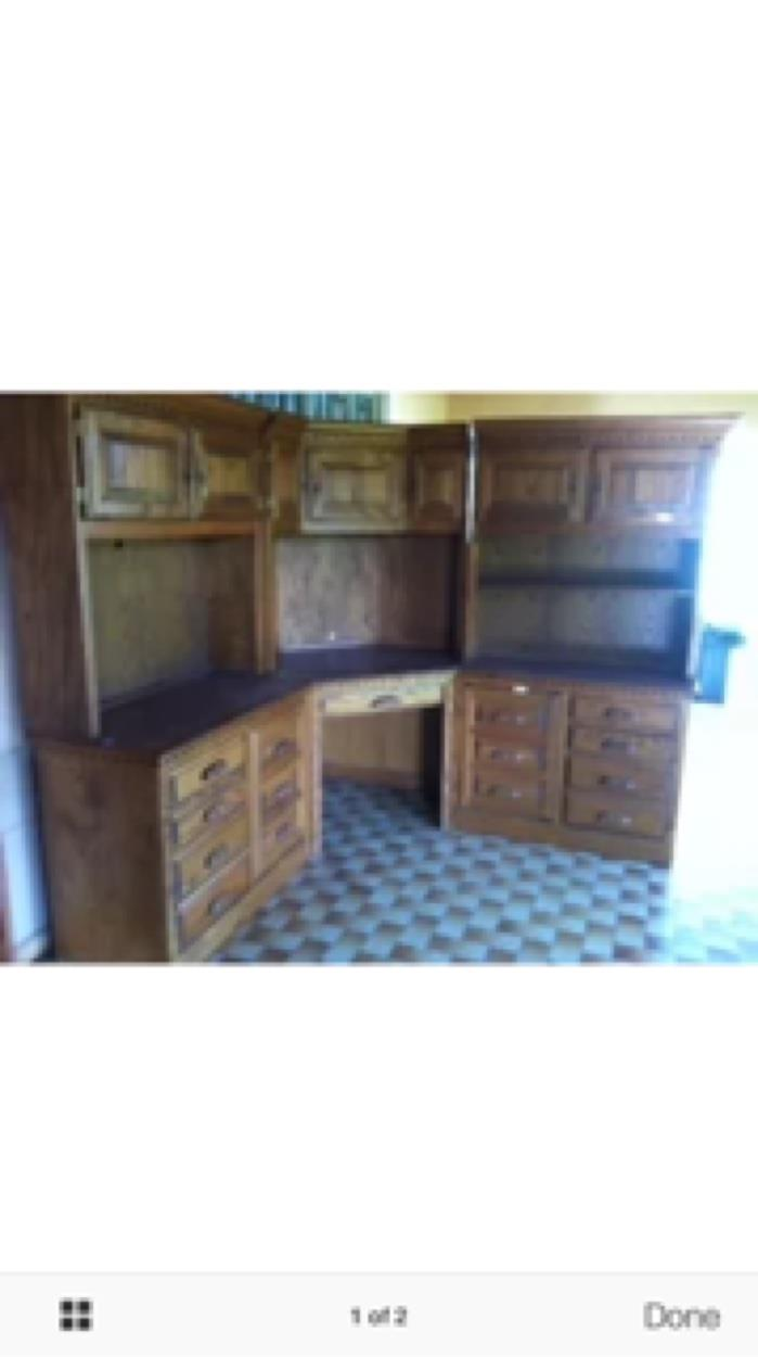 corner computer desk with hutch on each side and