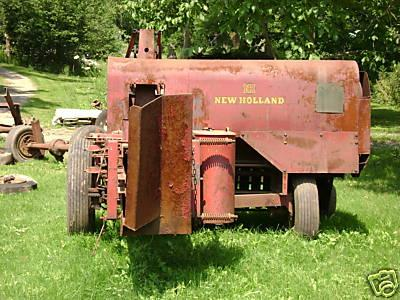 A tractor is available at both the origin and destination to push the hay baler onto and off the flatbed trailer.