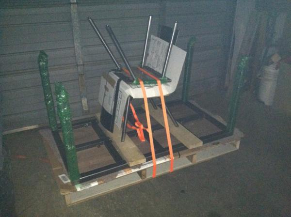 2 carts standing on end on pallet wrapped