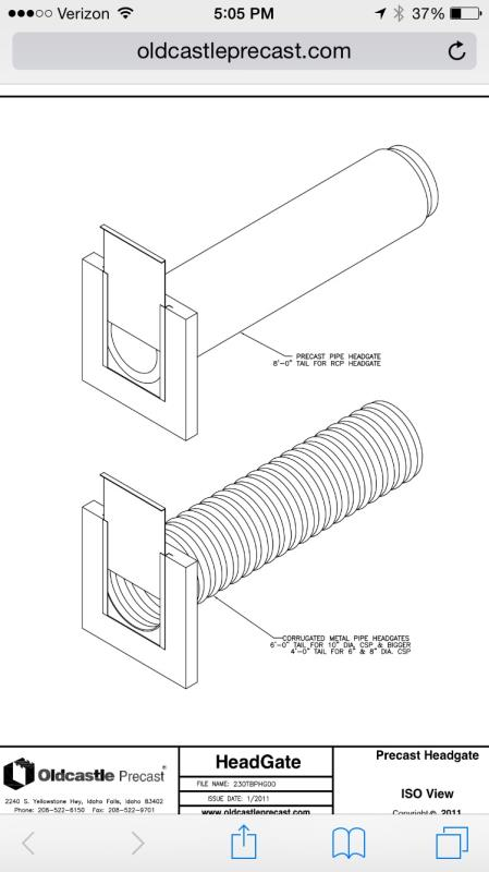 Concrete head gates with 6' pipes on end