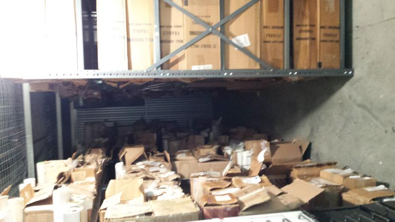 boxes of wallpaper,fabric bolts,flat file cabinets