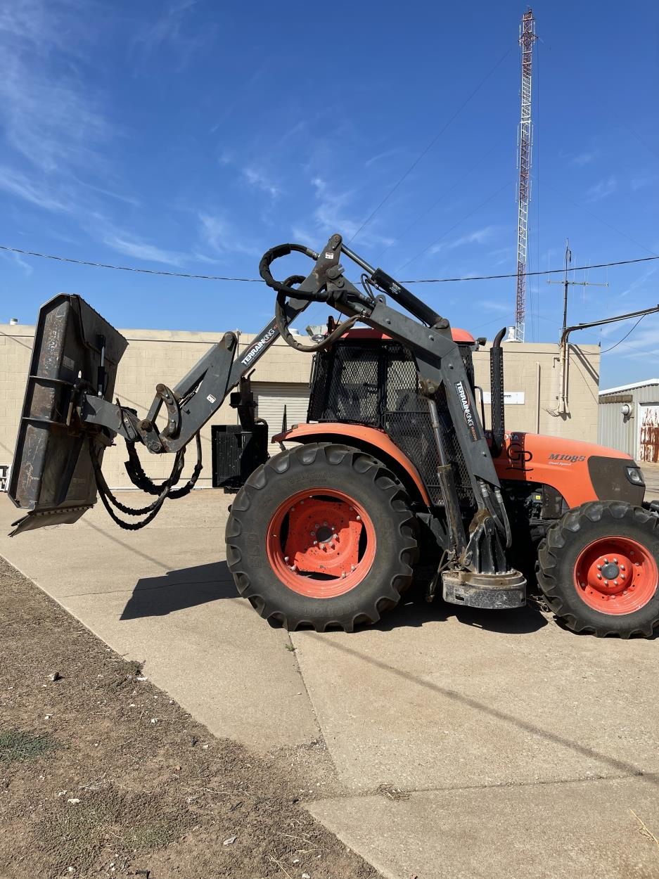 there is a saw and 5ft brush hog with it. tractor is drive on/off trailer.