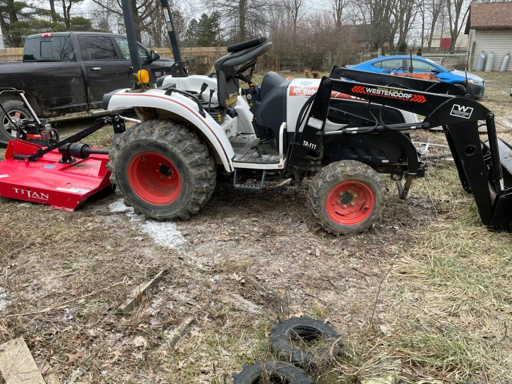 Pickup M-F daylight hours. Loading assistance is available. Tractor currently has a backhoe and forks attached. Attached onto the forks are the bucket and posthole digger. There is also a push lawn mower and a trimmer head. All of this is Included in the weight of the tractor.
