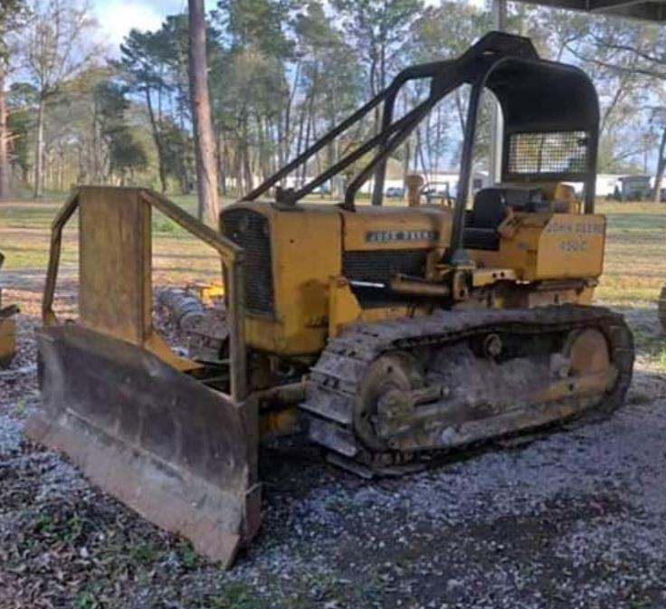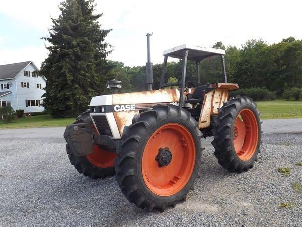 The roll bar folds down to a height of 6'2". The tractor is available for pickup 5/6/2019.