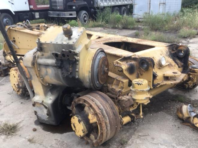 This shipment is for the rear half of an articulated dump truck, with axles attached. It was cut at the pivot point in the body of the truck. Bed has been removed. Bed and steering cylinders are included. No wheels/tires. In addition, there is a transmission out of a 980B wheel loader. It can be set inside the frame of the truck rear for shipment. Need open flat trailer so load can be hoisted off with excavator at destination.