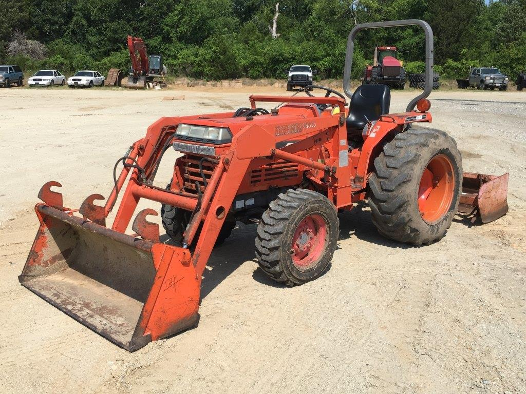 Tractor runs and has automatic transmission Front loader and box scrapper currently attached back(grader) blade is not and post hole digger are not.