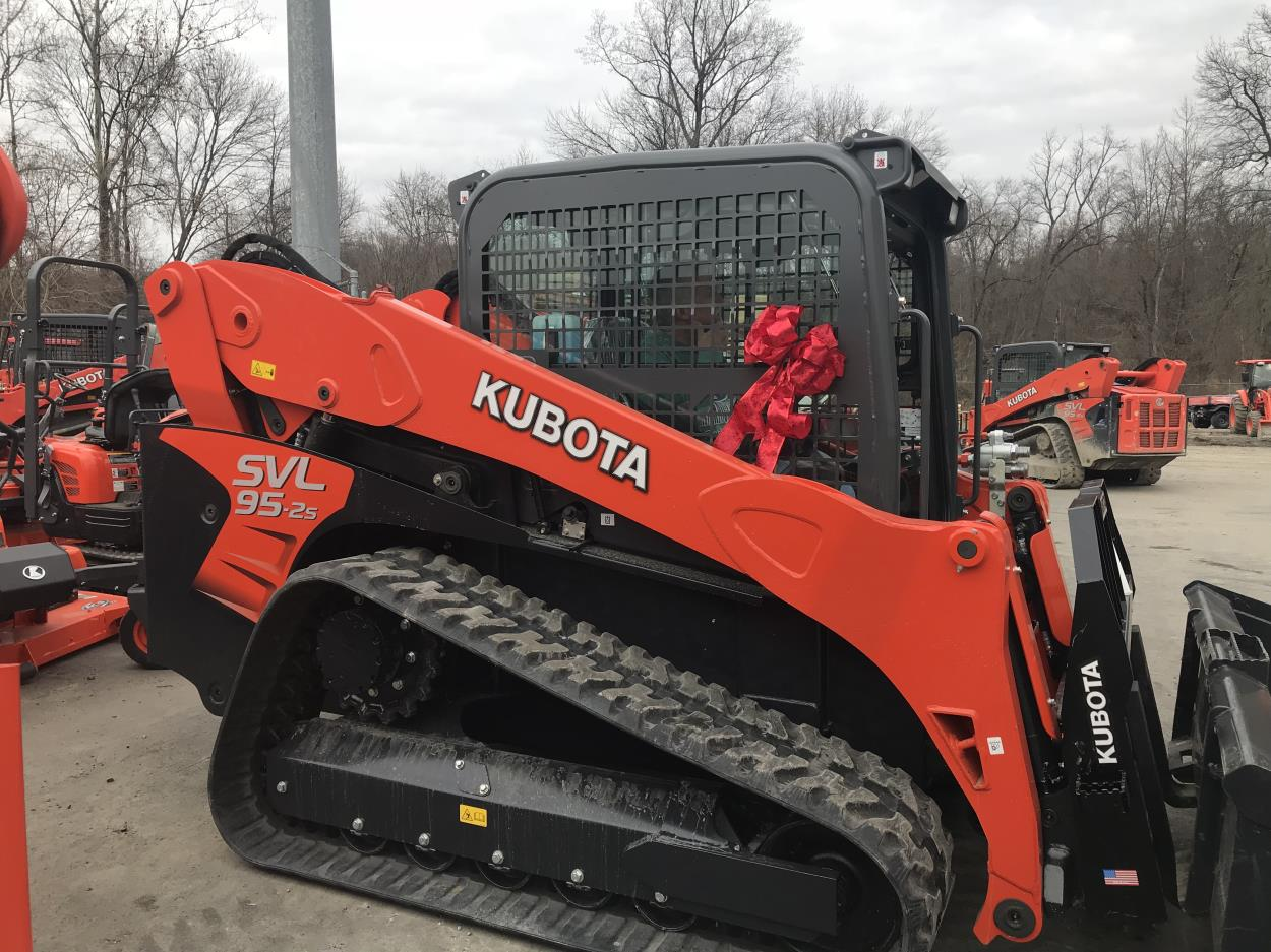 Tractor has a front end loader and attached bush hog