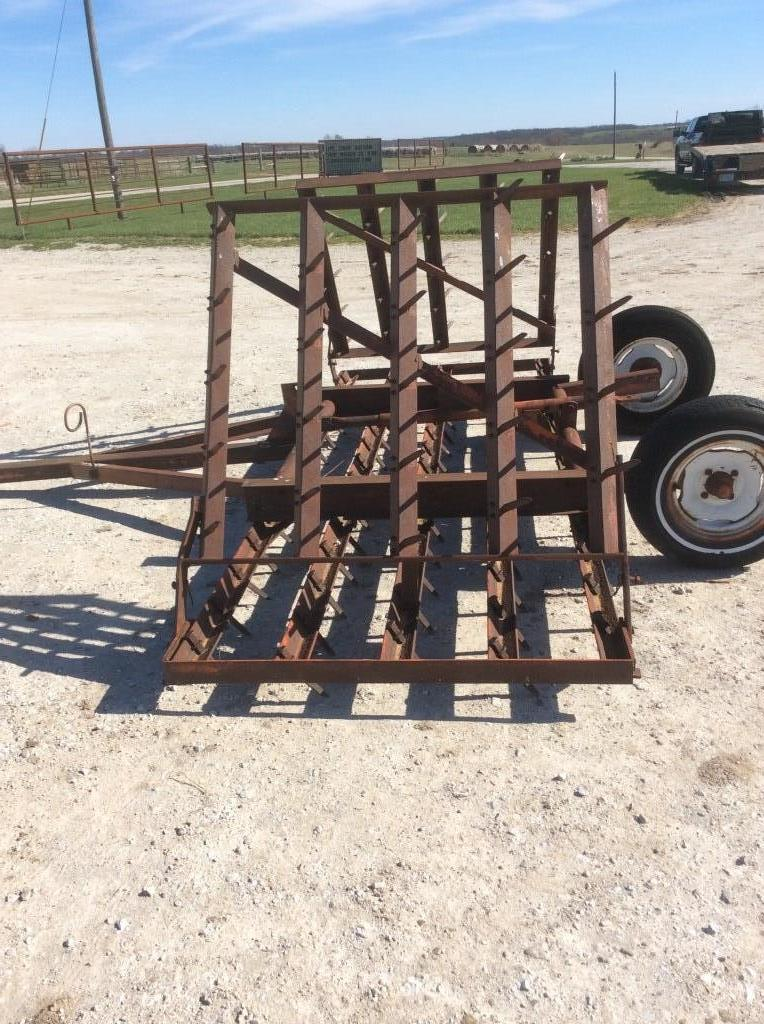 Truck frame with hydraulic hook lift. 15,000 lbs. 16' long x 8' wide x 8' high. The green thing in the pic.