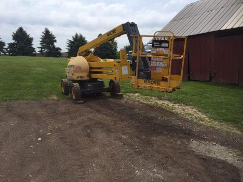 Seller stated: "It probably won't climb straight up and it definitely won't hold on an incline but I have enough stuff to get it loaded: winches, chain hoist, tractor, or position on hill." (Smaller boom lift that is battery operated and trams and runs.)