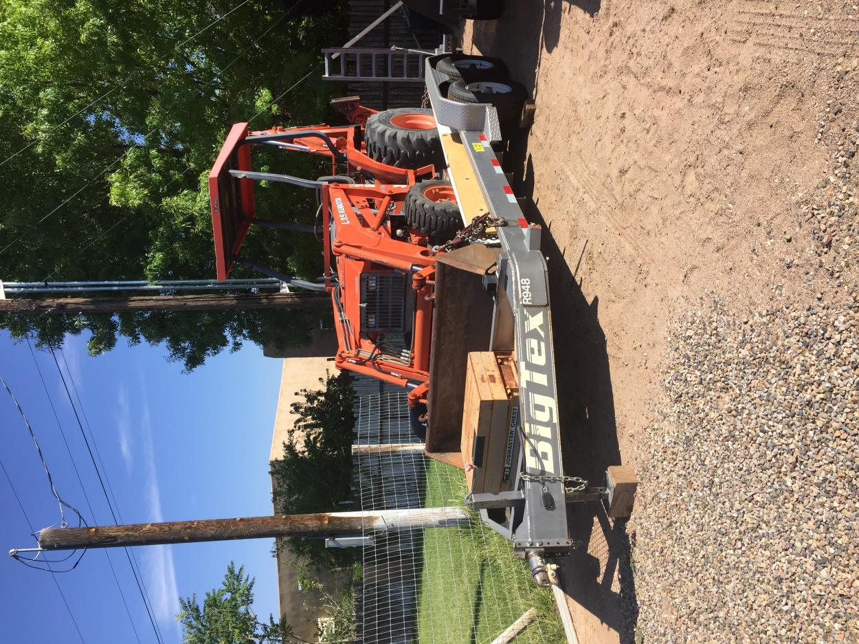 tractor is loaded and chained on big tex equip trailer. New tires on trailer, 5k axles. Bearings recently checked. Spare tire on trailer