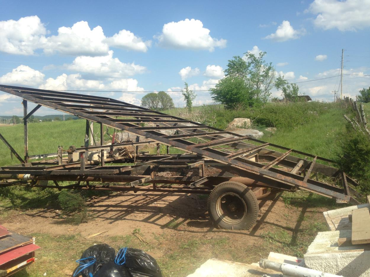 The trailer it sits on now in the photos is not included in measurements and does not have to be transported.