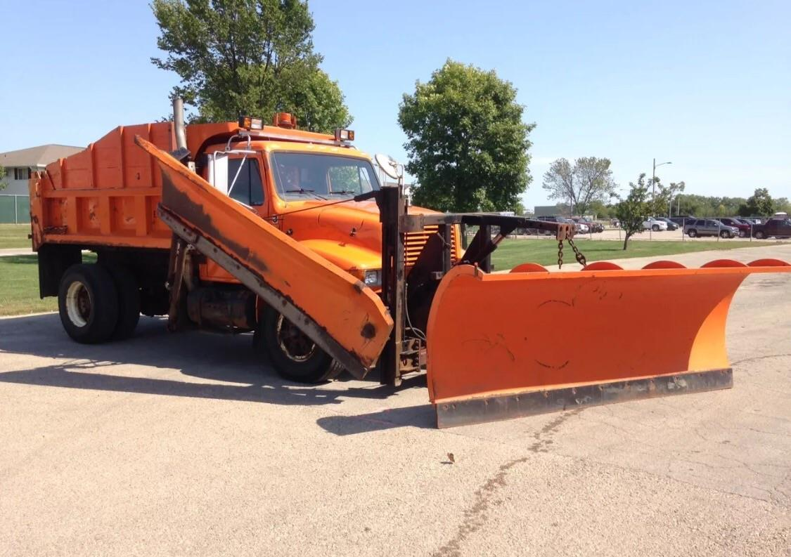 The truck should be around 8 feet wide. BOTH BLADES WILL BE REMOVED AND PLACED IN BED OF TRUCK