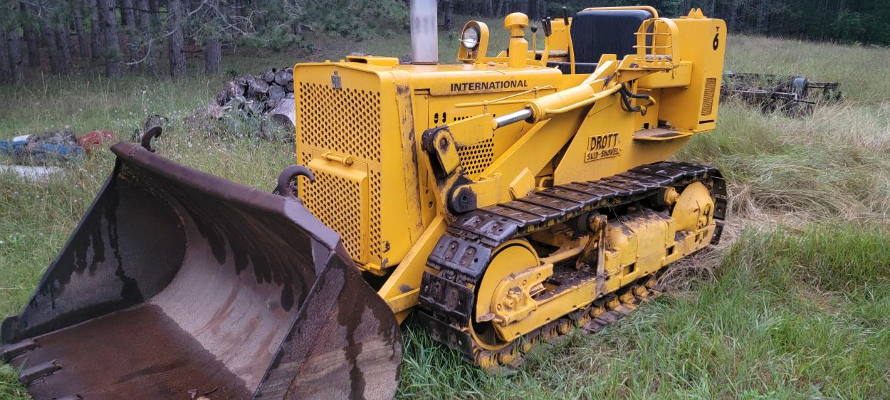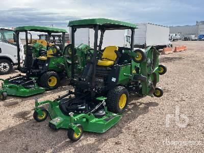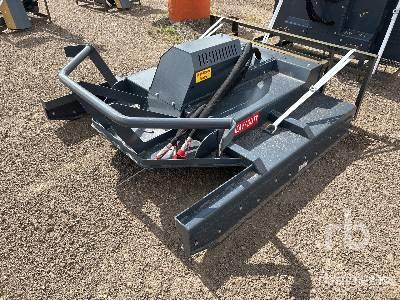 has standard bucket and Land Pride RCR 60" brush hog implement.