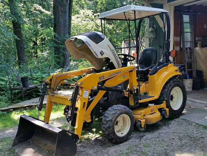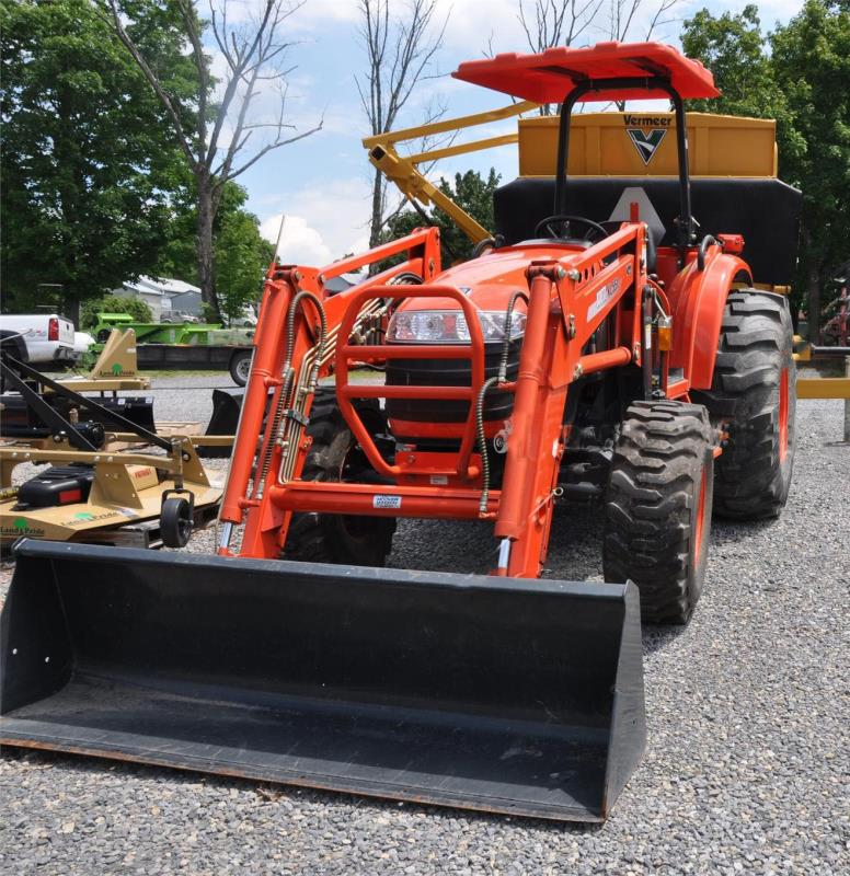 Front End Loader (FEL) and canopy attached. Loaded tires. Approximately 7000lbs.