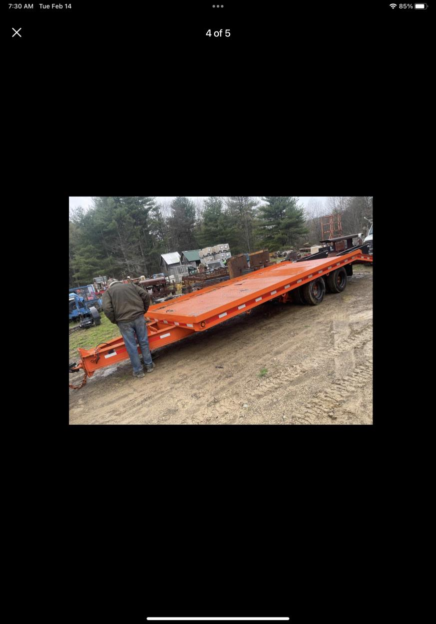 Custom 20 ton tag trailer with steel deck. Approximately 5 ton empty weight. Adjustable height pintle hook. Electric brakes.