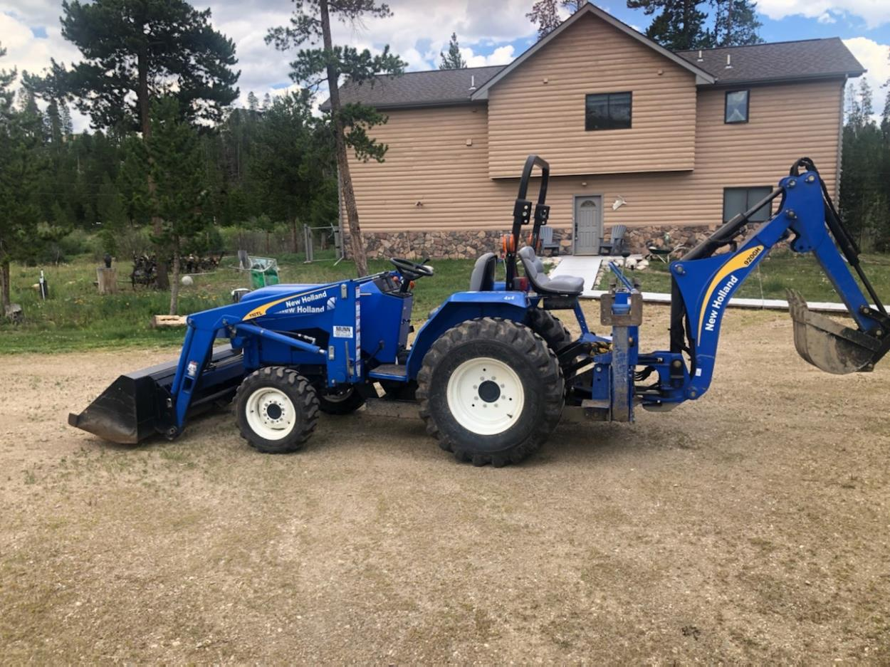 I have an operational New Holland T1510 with front end loader and backhoe attached. With the tractor goes a box blade, brush hog, and a set of forks.