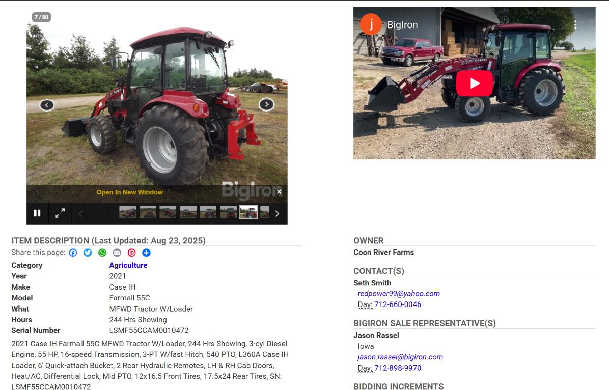 Runs and drives for loading/unloading only. Requires lowboy or step-deck trailer. Approx. 23,000 lbs, 24’6” long, 8’4” wide, 10’10” tall. Pickup at auction yard in Pasco, WA (business location with loading assistance if needed). Delivery to Kalispell, MT (business location, ground unload available). Flexible on pickup date within posted window; must be picked up by 10/14.