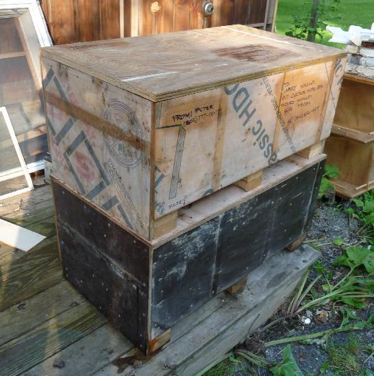 The upper crate: 38"L X 21"W X 17"H 215 Lbs.