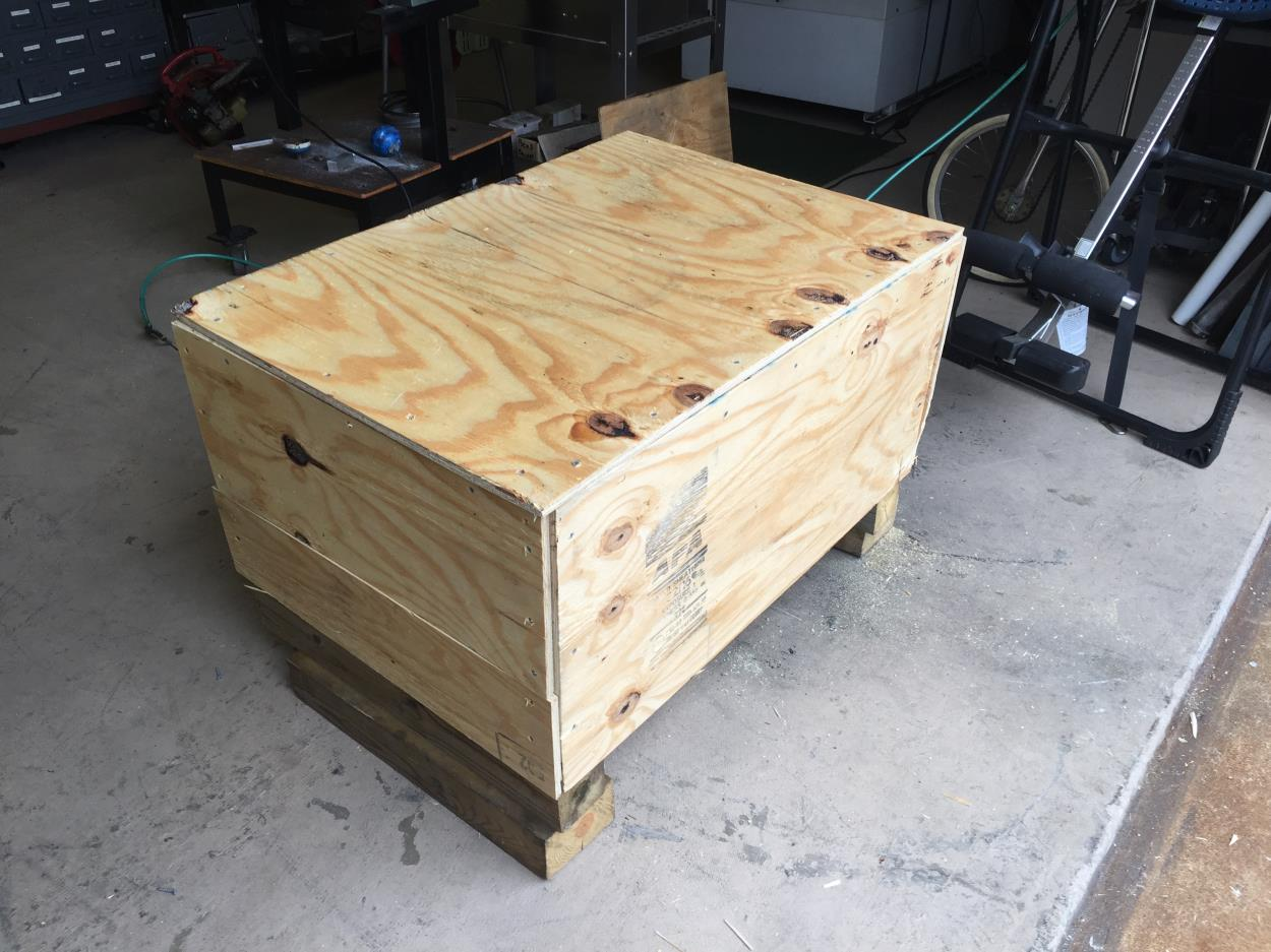 Chiropractic Table placed on two pallets covered with cardboard and bubble wrap.