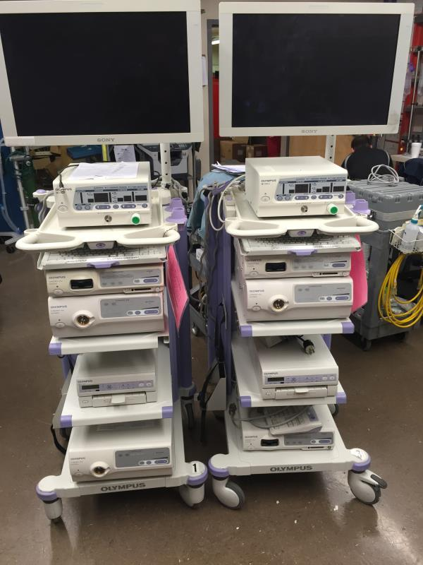 Two component racks. Each rack has several components about the size of an old VCR. Can be shipped in the rack but MUST BE PADDED/PROTECTED. Displays on top must be protected CAREFULLY and perhaps removed for safe transport. The individual components can be remove from racks and wrapped separately or boxed.