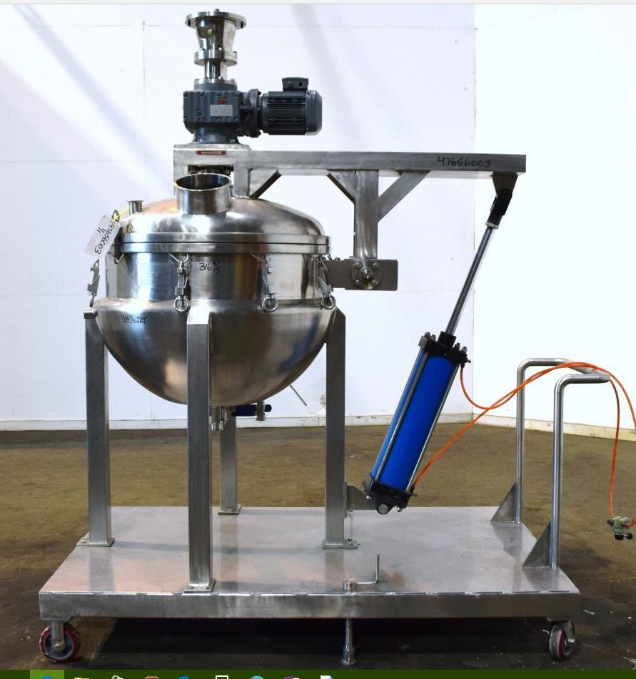 SS 80 Gal. Steam jacketed kettle with agitators.