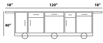 espresso cart, storage cart, display case, boxes.