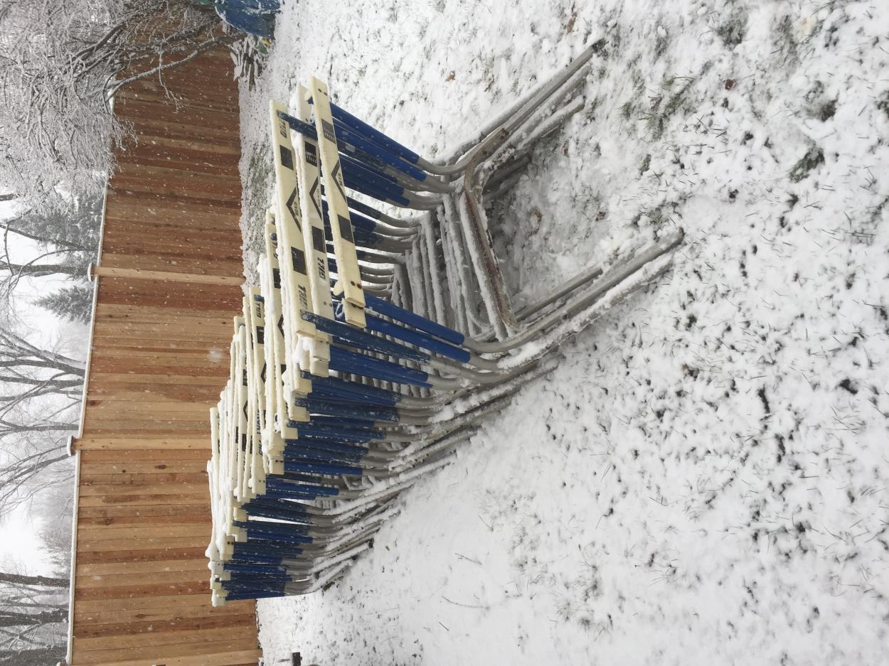 Adjustable hurdles. Stacked items are 16'9" long.