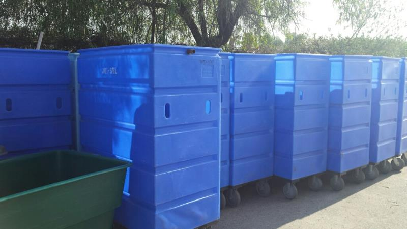 50 Laundry carts on wheels, 50 will fit on 52' tra