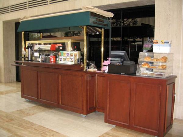 Kiosk is broke down and items in picture are boxed. The large kiosk itself is not crated or palletized but is on caster wheels for easy moving. Canopy can be removed easily for shorter height if needed. Can be picked up 06/28 or 06/29