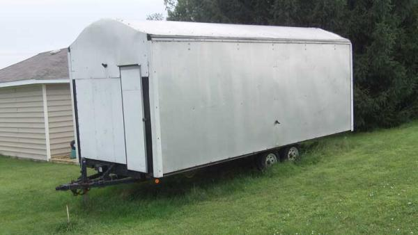 The top can be disassembled. In no way should this be driven with no protection because its made of wood and the wind drag can ruin it. The cabinets are sturdy but you shouldn't stack anything on it that would damage it or scrape it. The sink is mounted to the cart. It is on caster wheels and requires a lift gate or a trailer that it can roll into it. If you have any question please call me before you bid.