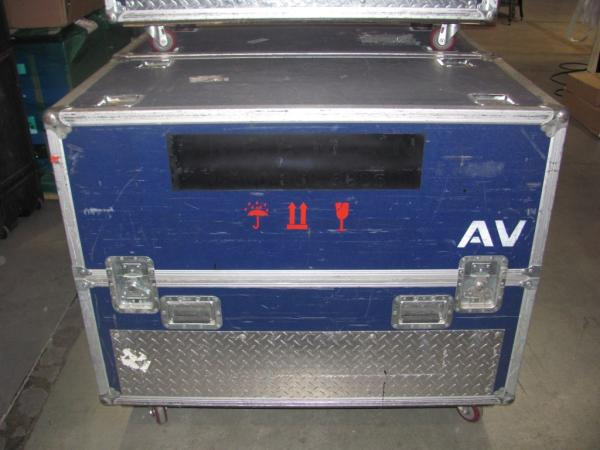 Item 2 large flight case with wheels on bottom (unit must remain upright during shipment)