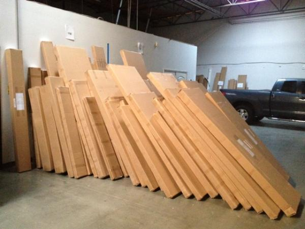 3 pallets of roll laminate. 1 pallet has 9 rolls approx 24" tall. 2nd pallet has 13 rolls appox 24" tall and the 3rd pallet has 12 rolls approx 24" tall. The weight of these pallets should be no more than 500 lbs each. Then one metal shelf appox 4x7 with edge banding laminate.