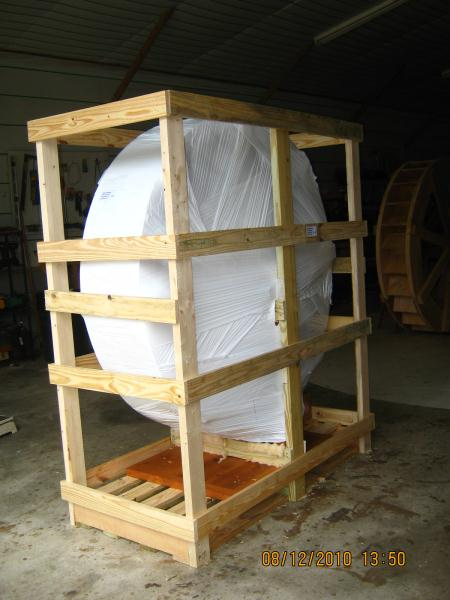Picture is a simular wheel I shipped to UT last year. No tarping needed, Just throw a few straps and chase the highway. Great way to fill out a partial load. Business pickup; residential delivery but customer says he has the ability to unload with a lift.