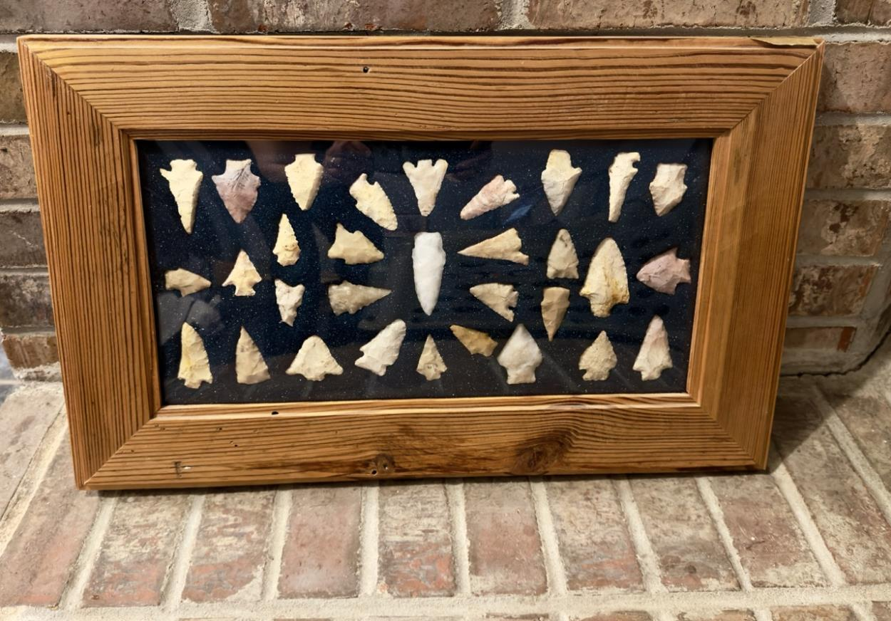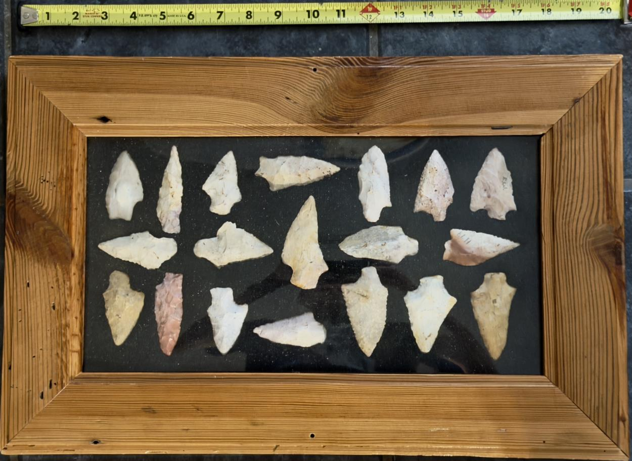 3 wooden framed arrowheads plexiglass displays (around 12" x 18") (1 example pic)