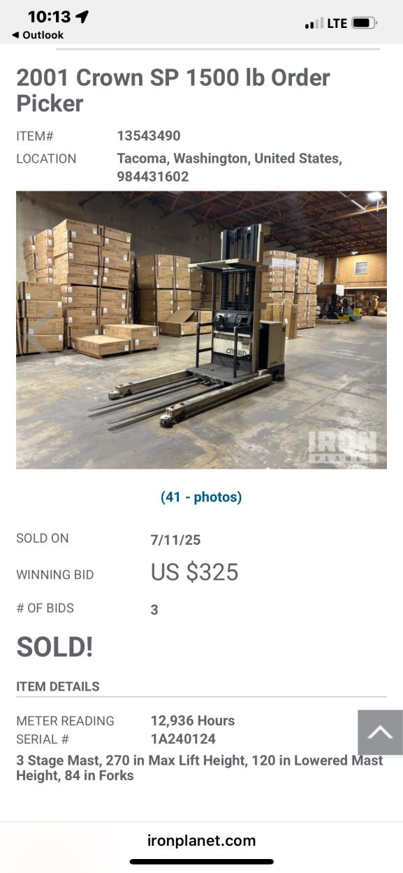 Forklift is listed as a non runner, needs to be winched on. with a good jump pack may be able to get it started if the base would let you use a propane tank to load but i wouldnt plant on that.