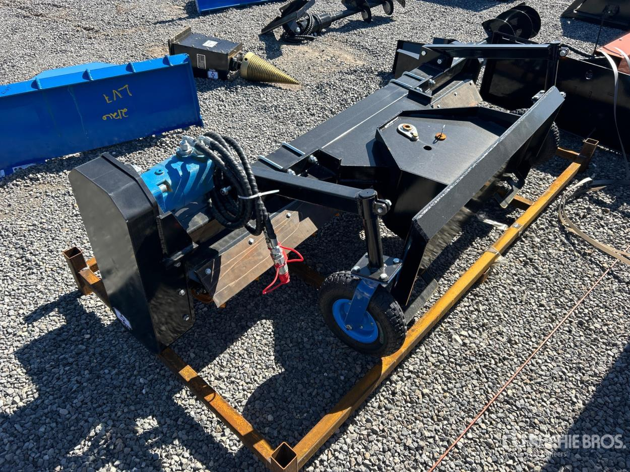 This is a light duty skid steer power rake. It's strapped to a metal frame. Loading is provided at pickup and dropoff sites.