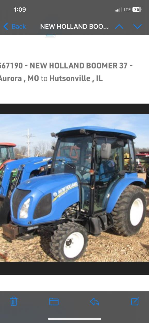 Tractor is ready for pick up and the tractor can be driven on and off the trailer