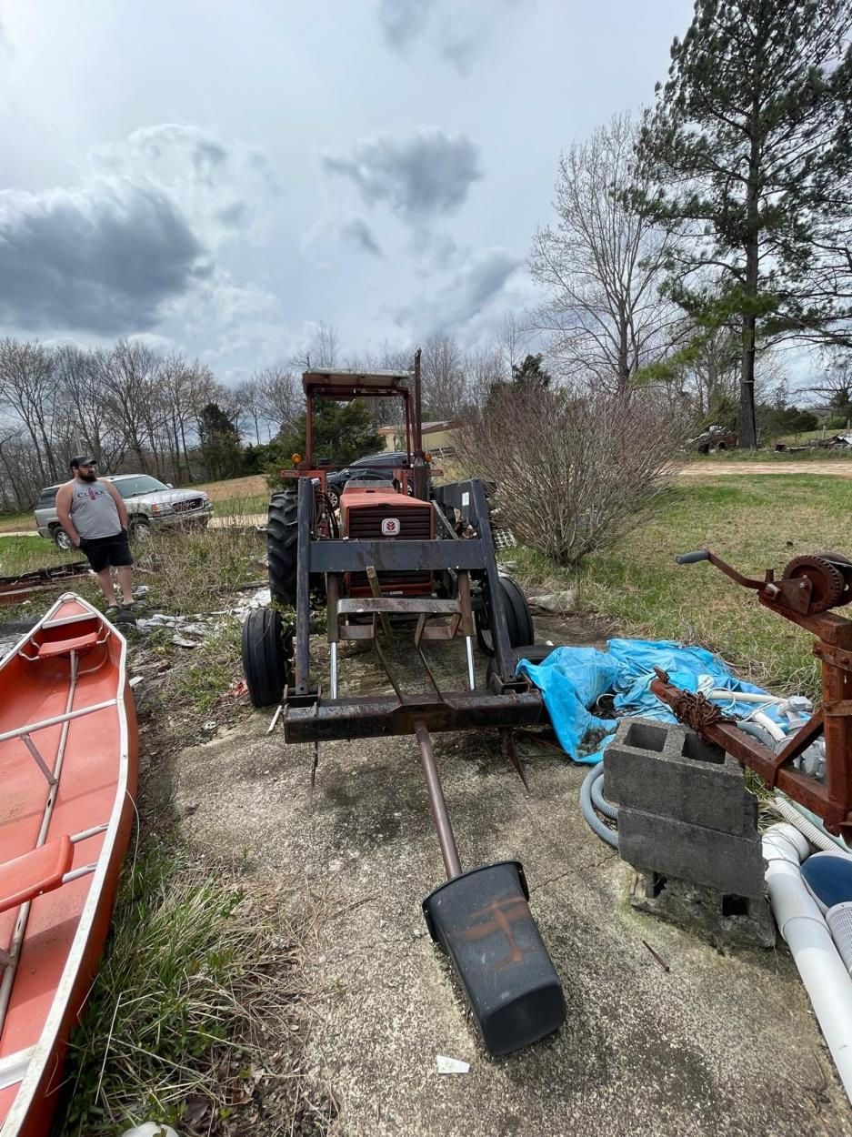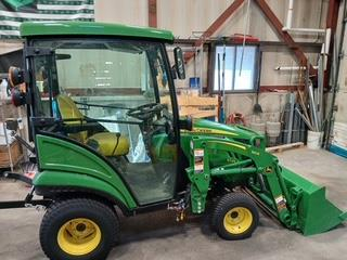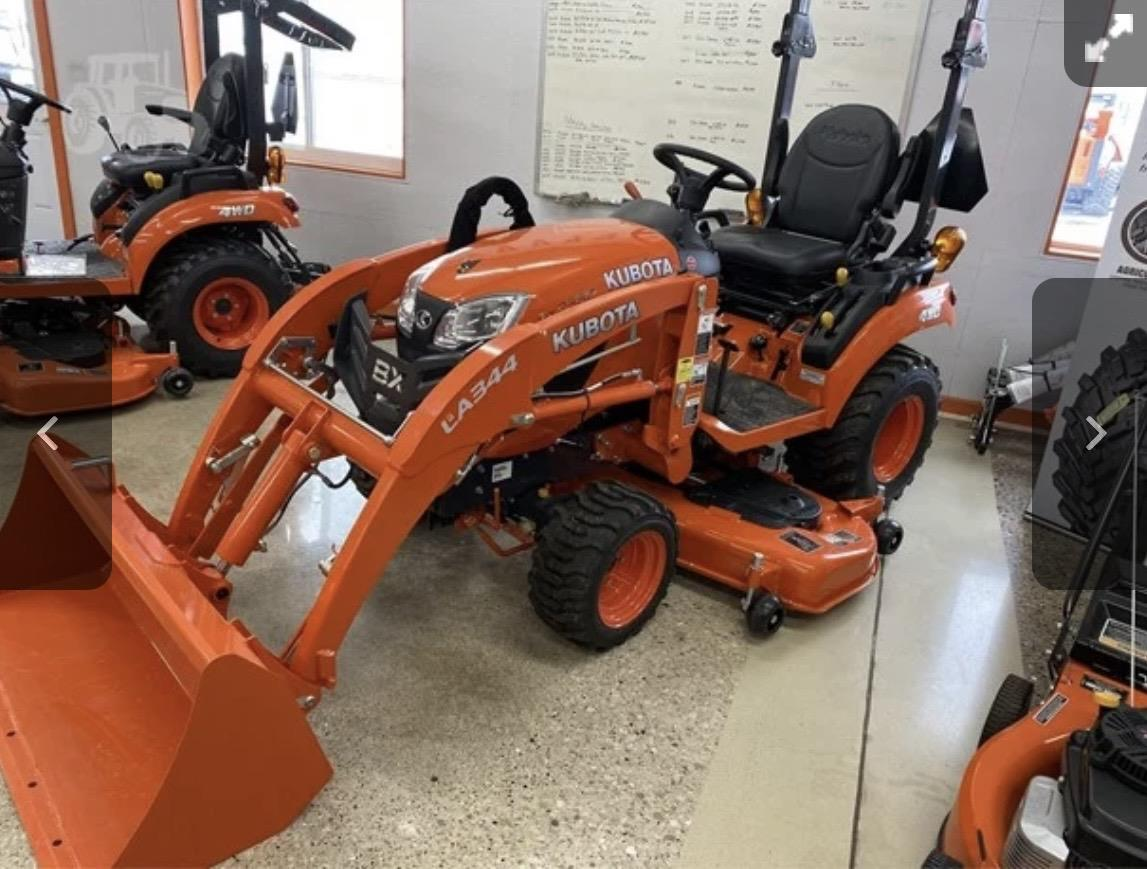 Has a 60” belly mower attached and a loader