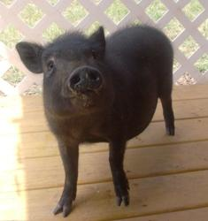 This mini piglet needs to be inside the cab of the automobile with AC at all times. Freedom can not ride in the back of a pickup or in a horse trailer as she is too small. At 6 weeks she will weigh 5 lbs and can not tolerate the heat and can die of heat stroke if left with no AC.