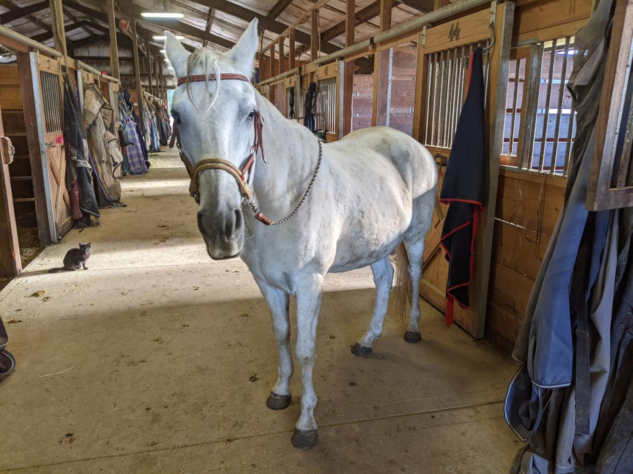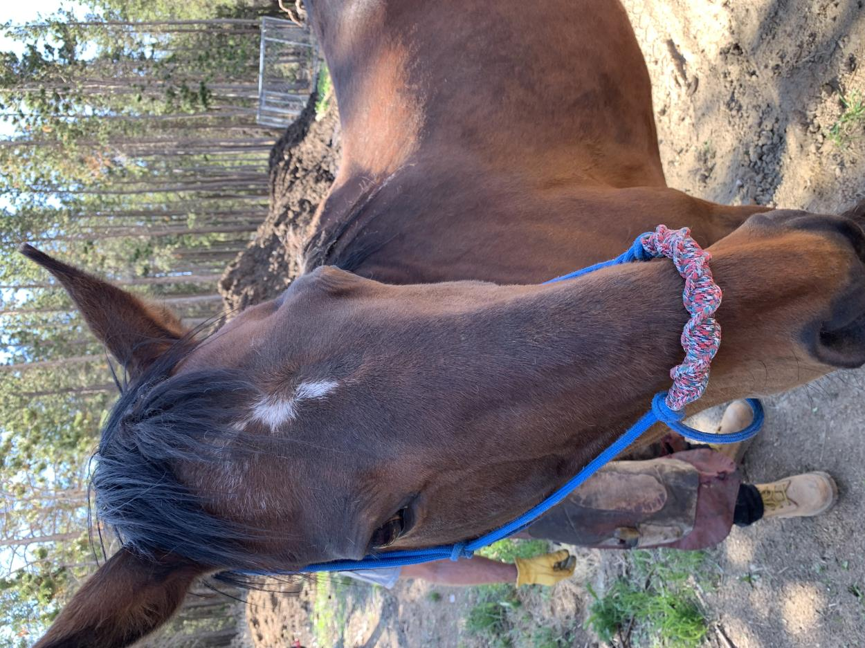 Pep is an older mare who is in excellent shape. She is friendly yet very cautious. She will respond well when not rushed.