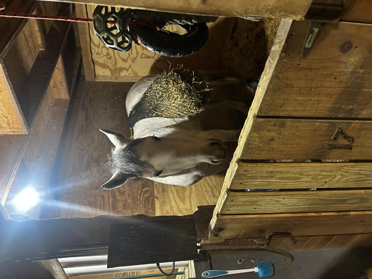 Dominick is 6 months old and needs a box stall thanks