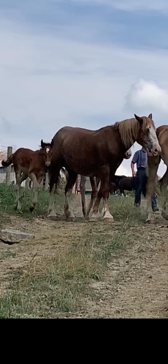 It is a mare and month old foal combo.