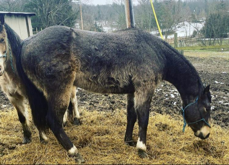 Owner will be sending extra hay with horse for mixing with new hay on arrival.