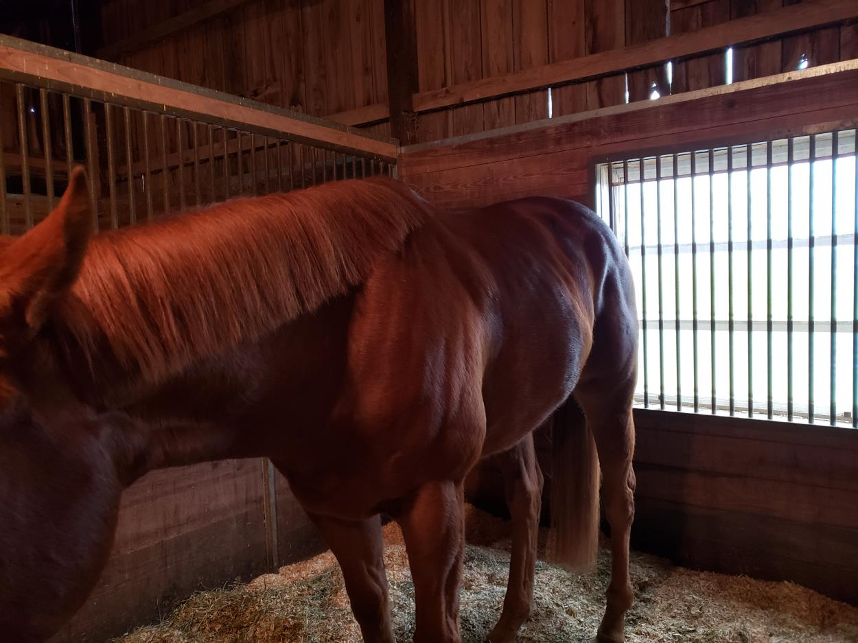 Mare is very uncomplicated. Hauls well, gets along with other horses. Easy mare.