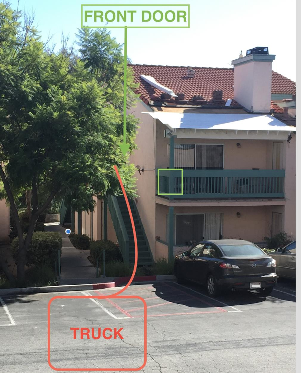 The apartment I'm moving to has a place to park for trucks right behind building (about 10-15 ft from curb to entrance). Then elevator is about 10 feet from entrance. My unit is the first door off elevator (so about 30-40 ft of carry total).