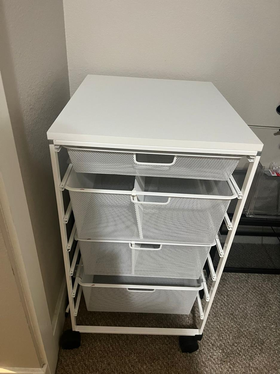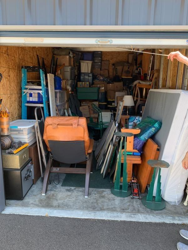 This 10x20 storage unit is fairly full, though there is quite a bit of space near the front. I have a lot of boxes and bins; some are heavy with tools in them. I have one mattress and a few dressers, a maple picnic-style table with legs removed, and a few chairs and odds and ends.
